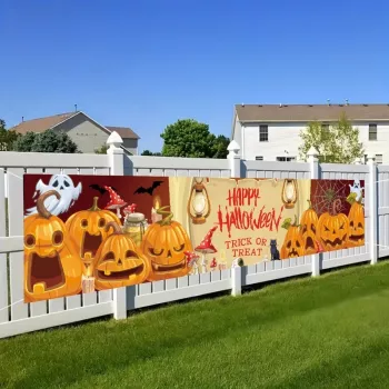 Retro Ghost Pumpkin Banner for Halloween Yard and Porch Decorations