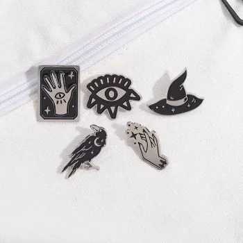 Halloween Gothic Wizard Hat Enamel Brooch – Eye, Hand & Crow Lapel Pin
