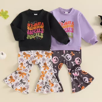 Toddler Baby Girls Halloween Letter Print Sweatshirt & Pumpkin Flare Pants Set