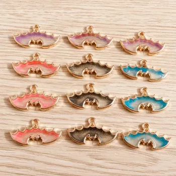Halloween Bat Charms – 10pcs Enamel Pendants for DIY Jewelry & Accessories